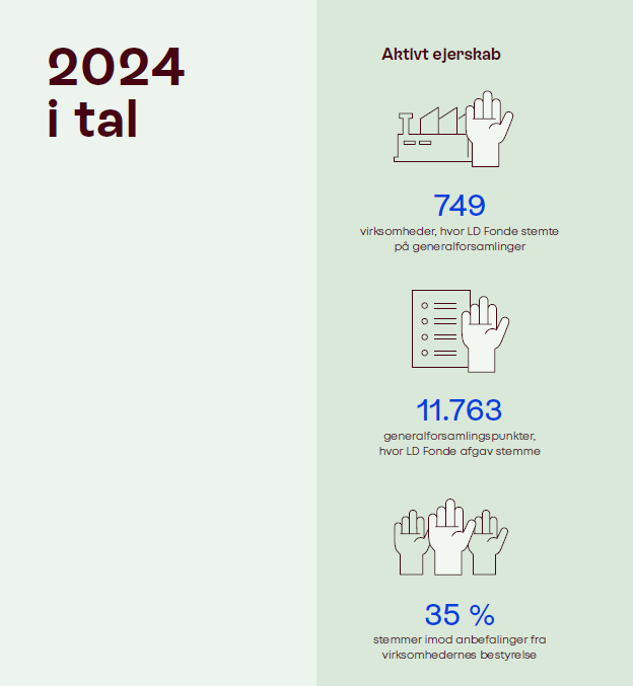 LD Fonde deltager aktivt i afstemninger ved generalforsamlinger for at påvirke de virksomheder, vi investerer i.