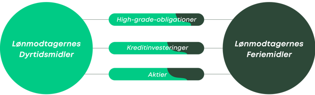 Formuen i henholdsvis Lønmodtagernes Feriemidler og Lønmodtagernes Dyrtidsmidler har den samme forvaltningsstruktur, og investeringsfællesskabet mellem de to fonde sikrer lave omkostninger og adgang til kvalificerede investeringsrådgivere på alle væsentlige områder.