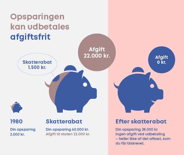 Din opsparing omfatter en afgift til staten, som skal betales ved udbetaling af din opsparing. Når opsparingen vokser, vokser afgiften også. Men siden 2015 har Lønmodtagernes Dyrtidsmidler kunne indbetale den nedsatte afgift til staten, når du fylder 60 år og er udbetalingsberettiget.