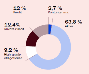 Det høje afkast skyldes de positive afkast fra alle aktivklasser og en høj afdækning af valutakursrisikoen. Aktier gav et afkast på 12,4 % efter valutaafdækning. Derudover bidrog kredit med et afkast på 7,1 %, private credit med 4,8 %, mens high-grade-obligationer gav et afkast på 2,6 %.