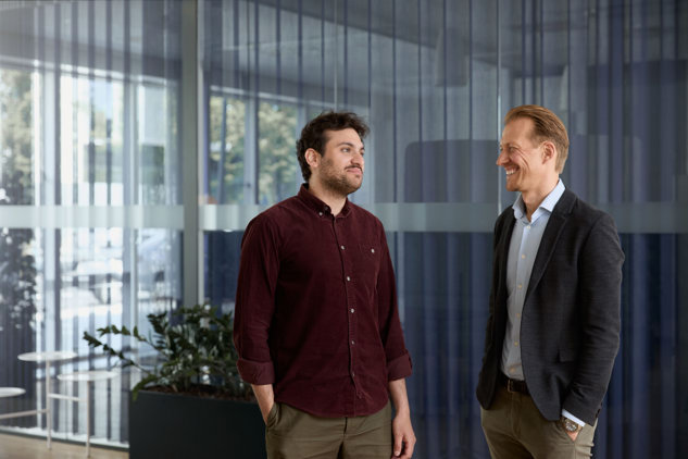 På billedet ses ESG-specialist Amir Hassan (tv) og CIO Kristoffer Birch (th). Foto: Henrik Brus.